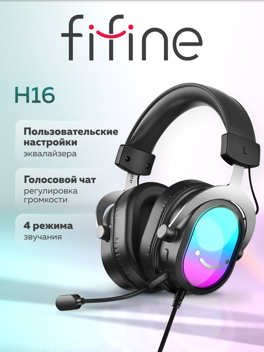 Игровые наушники Fifine H16 Gaming Headsets (Black) / 7.1 / отключаемая RGB подсветка: сравнение цен, характеристики, фото, актуальное наличие и цены.