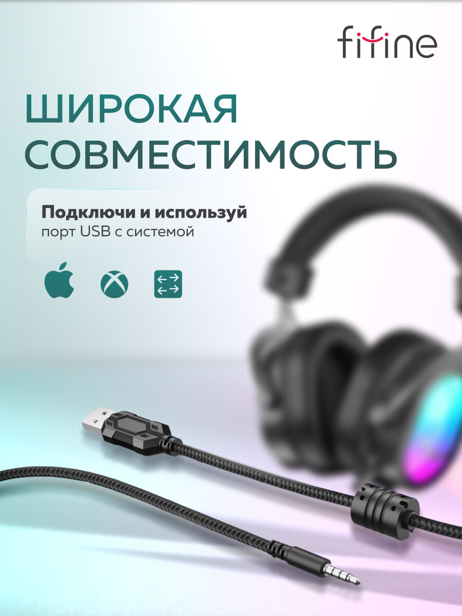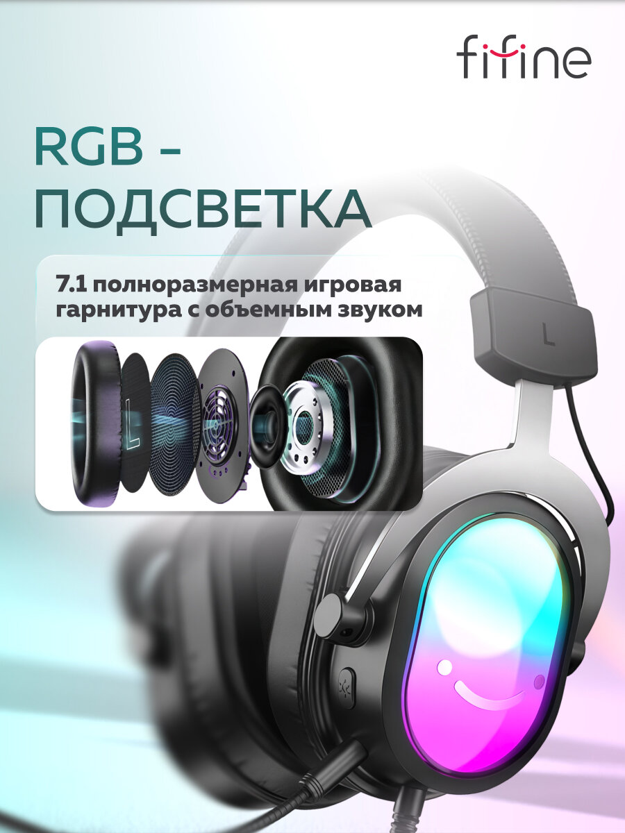 Игровые наушники Fifine H16 Gaming Headsets (Black) / 7.1 / отключаемая RGB подсветка