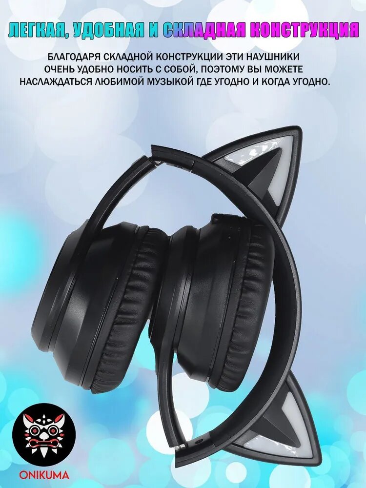 Игровые наушники Onikuma B90 Taffy Cat черные с кошачьими ушками, Bluetooth 5.3 и подсветкой: сравнение цен, характеристики, фото, актуальное наличие и цены.