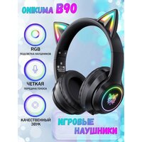Купить Игровые наушники Onikuma B90 Taffy Cat черные с кошачьими ушками, Bluetooth 5.3 и подсветкой с доставкой по всей России.