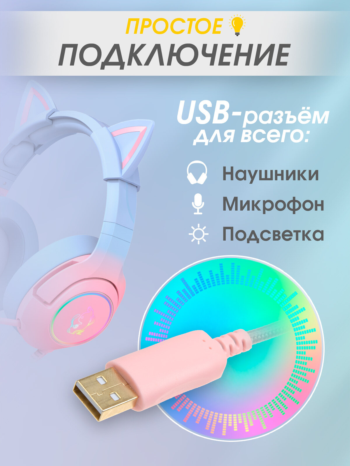 Игровые наушники Onikuma K9-PB Lilac Cat розово-голубые с кошачьими ушками и подсветкой: сравнение цен, характеристики, фото, актуальное наличие и цены.