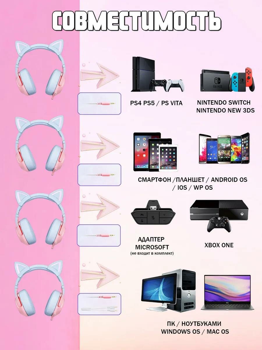 Игровые проводные наушники ONIKUMA K9 с RGB подсветкой и съемными ушками, Голубые с розовым: сравнение цен, характеристики, фото, актуальное наличие и цены.