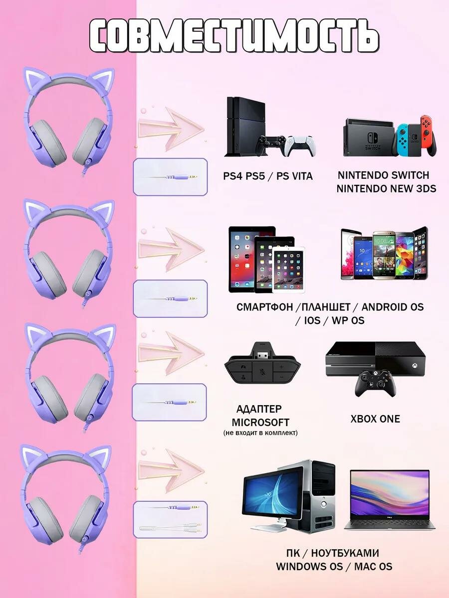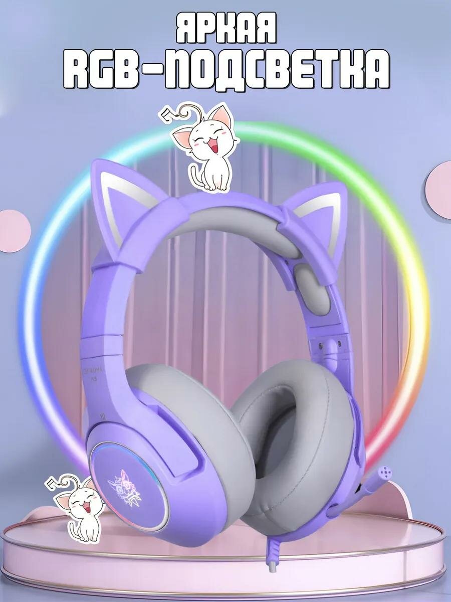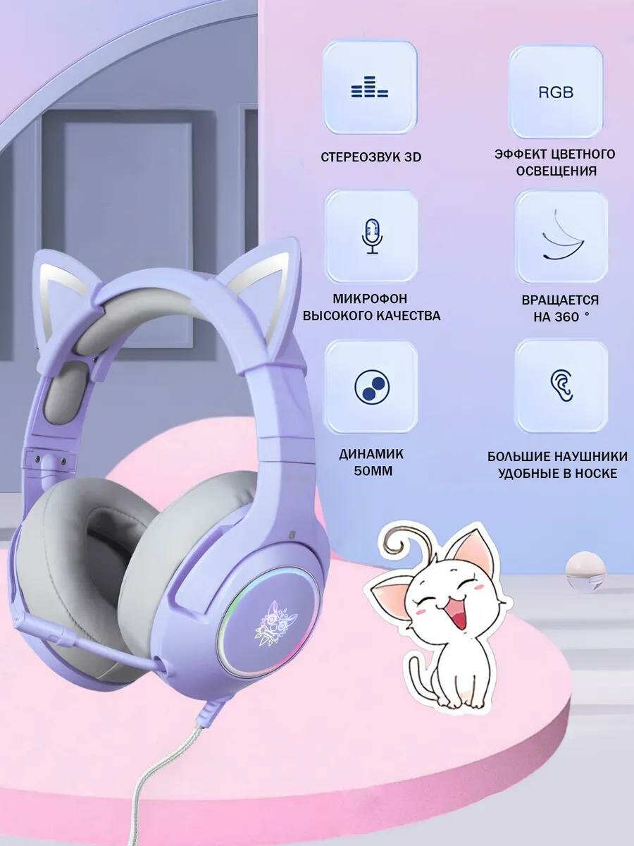 Игровые проводные наушники ONIKUMA K9 с RGB подсветкой и съемными ушками, Фиолетовые: сравнение цен, характеристики, фото, актуальное наличие и цены.