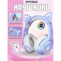 Игровые проводные наушники ONIKUMA K9 с RGB подсветкой и съемными ушками, Фиолетовые