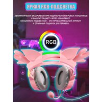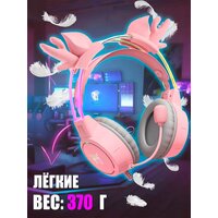 Игровые наушники ONIKUMA X15 pro Pink Star розовые с оленьими ушками и подсветкой