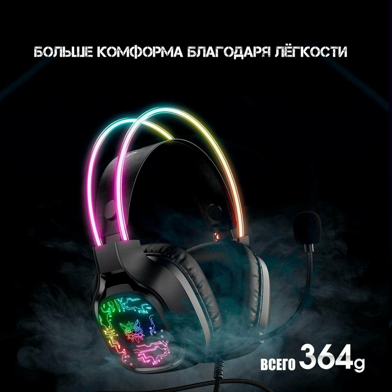 Чистый звук и уникальный дизайн – это ONIKUMA. Мы представляем полноформатные проводные наушники от мирового бренда ONIKUMA! Наушники с микрофоном отлично подойдут для ваших любимых игр и активных бесед с друзьями. Аксессуар подключается к ПК, Mac, мобильным устройствам, Xbox, PS4, Switch при помощи двух штекеров 3.5 Jack. Включение/выключение микрофона и регулировка громкости динамиков осуществляется с пульта управления, расположенного на проводе. Большие амбушюры полностью охватывают ушную раковину, плотно прилегают и изолируют от посторонних звуков для максимальной концентрации на игровом процессе. Наушники ONIKUMA Black Phantom выполнены в классическом чёрном цвете. Другая отличительная особенность – наличие яркой RGB-подсветки с ободком, которая автоматически включается при подключении игровых наушников к вашему гаджету через USB-штекер. Наушники с подсветкой – это привлекательный атрибут и отличный подарок для геймера.