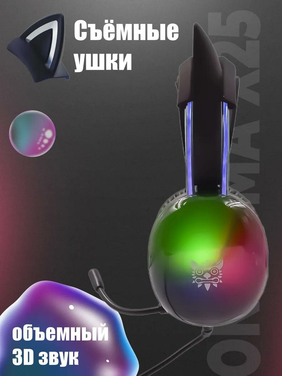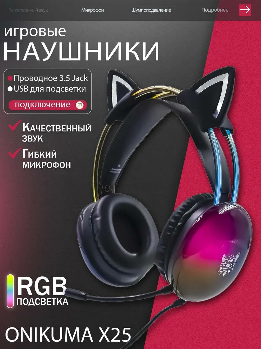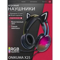 Купить Игровые наушники ONIKUMA X25 Rainbow Spirit черные, с RGB и кошачьими ушками с доставкой по всей России.