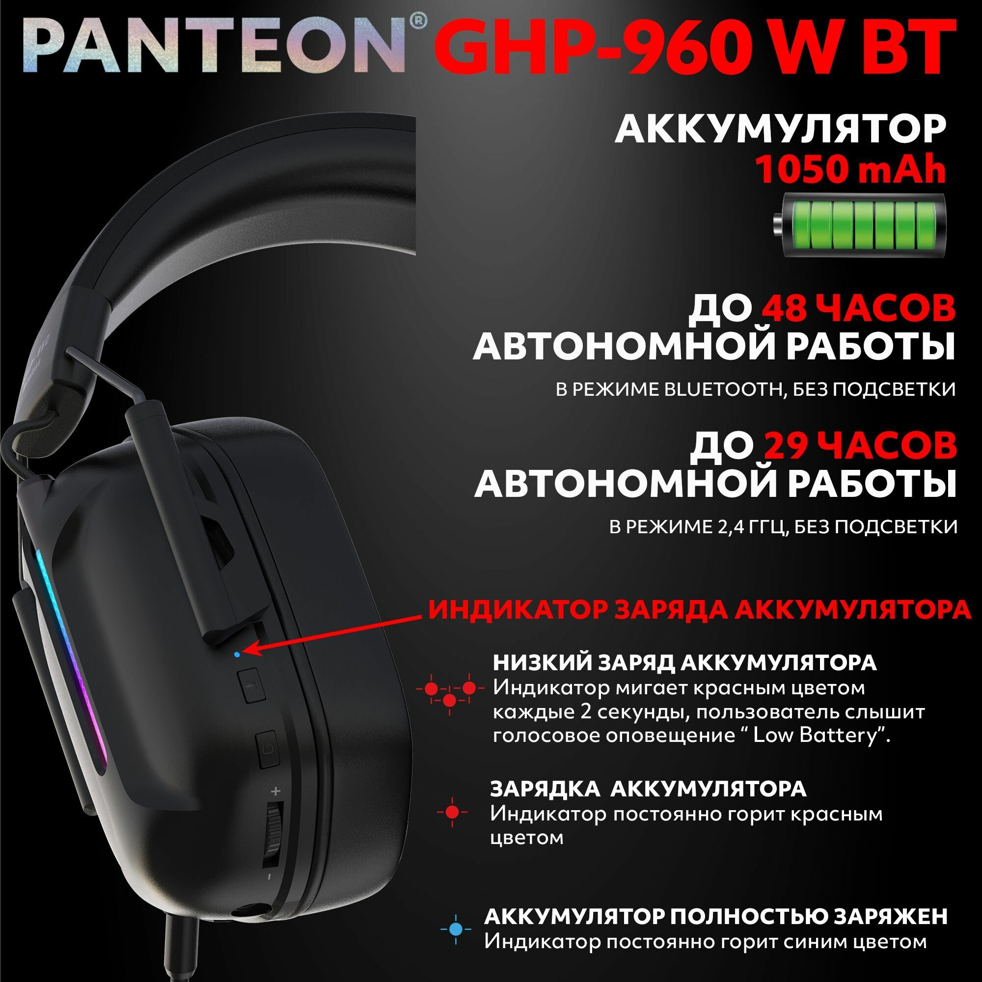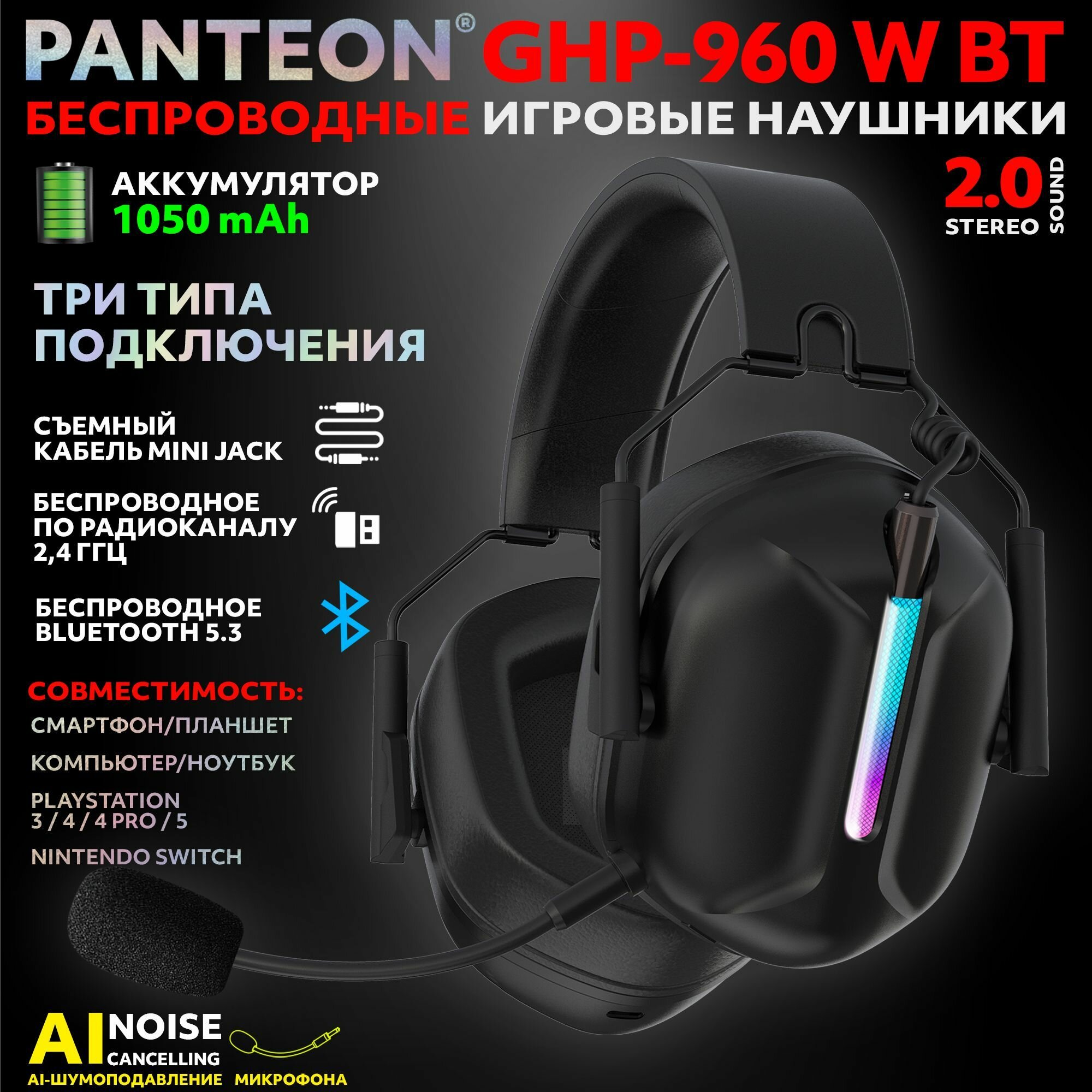 Купить Игровые наушники PANTEON GHP-960, полноразмерные, складные, Surround Sound, USB 2.4 ГГц/Bluetooth 5.3 с доставкой по всей России.