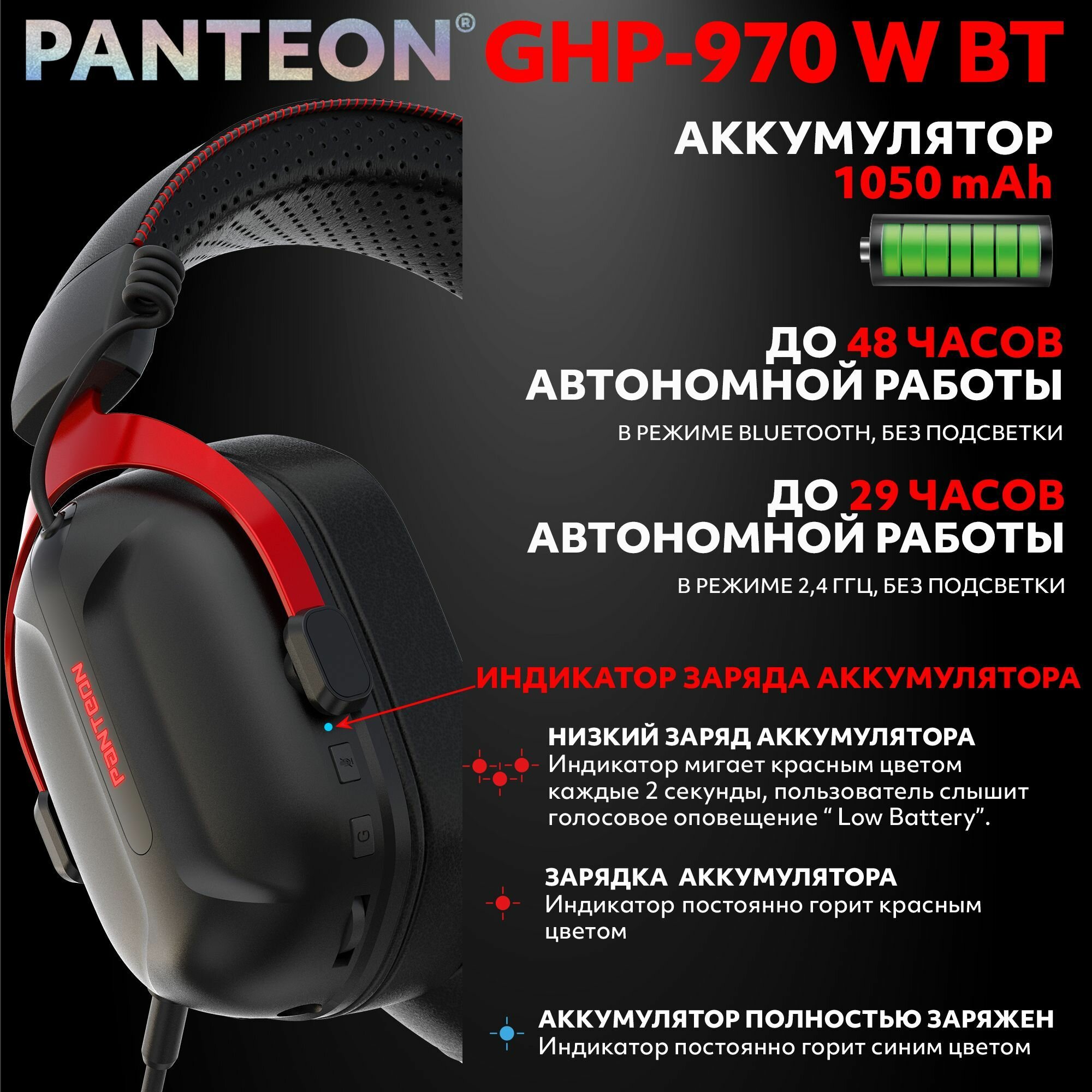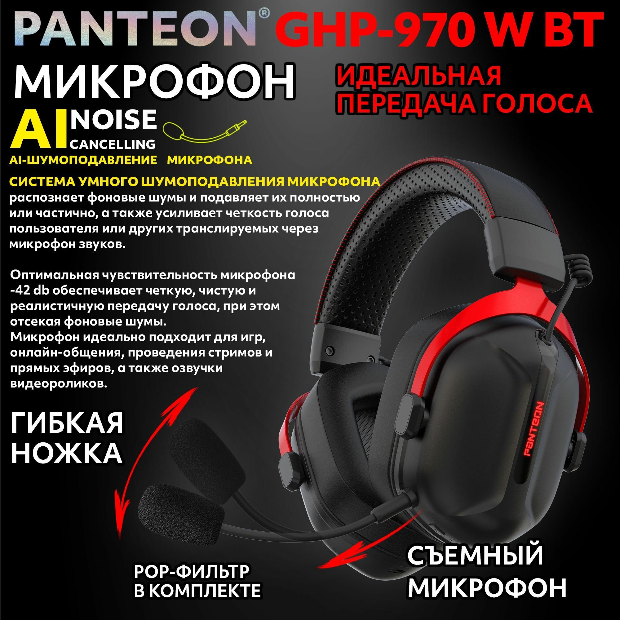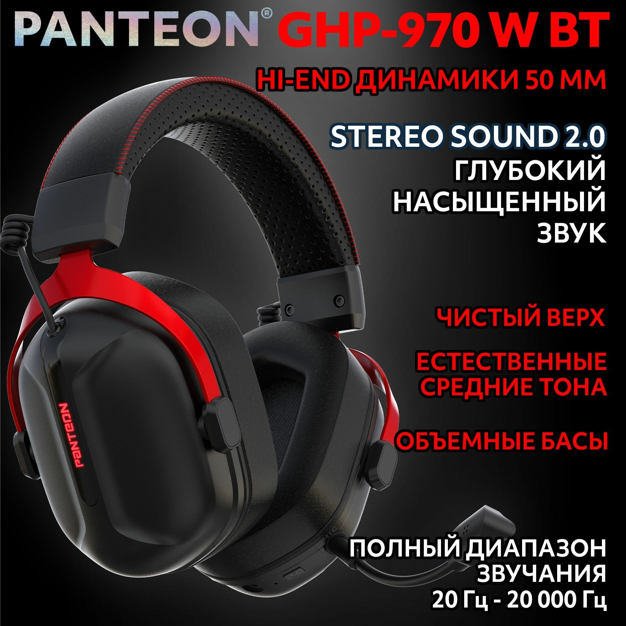 Купить Игровые наушники PANTEON GHP-970, полноразмерные, с подсветкой, 50мм, микрофон, Bluetooth 5.2 с доставкой по всей России.