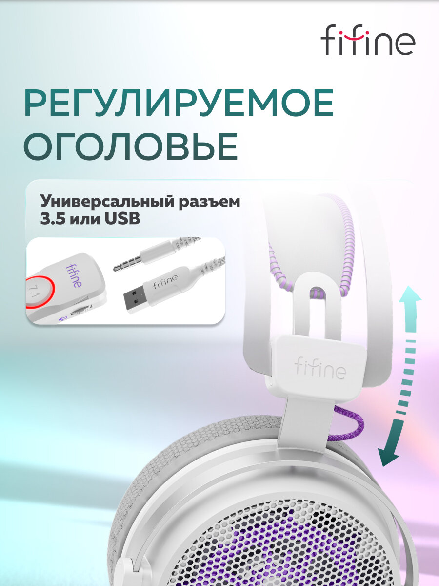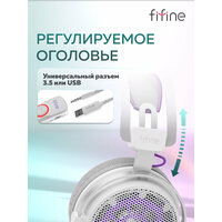 Игровые наушники с микрофоном Fifine H19 Gaming Headsets (White) и RGB-подсветкой