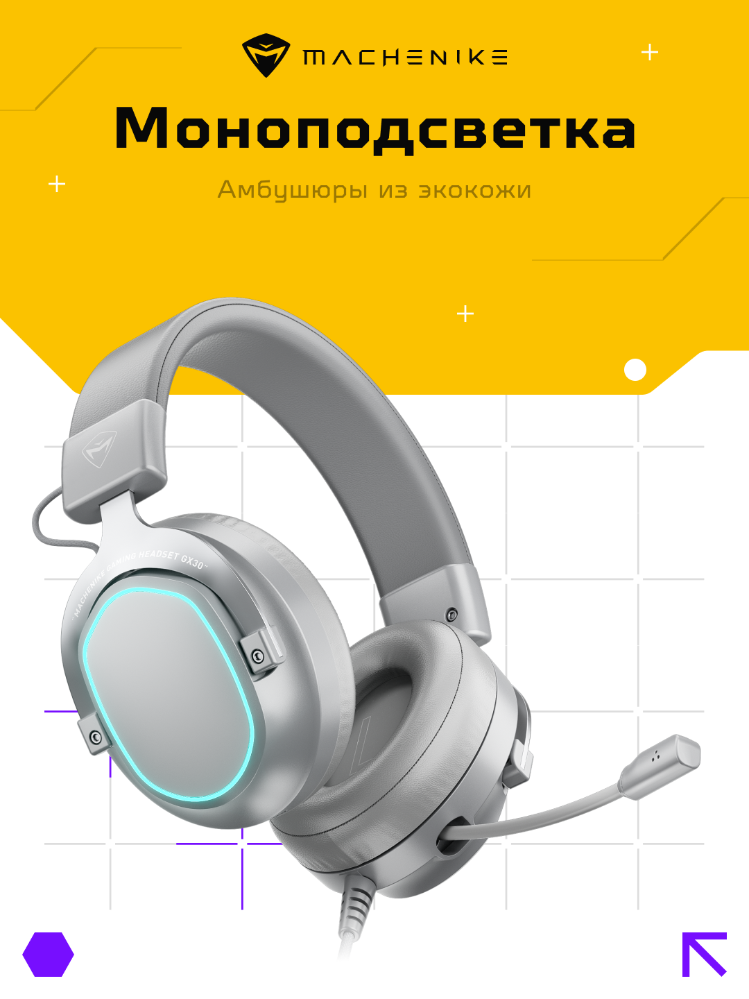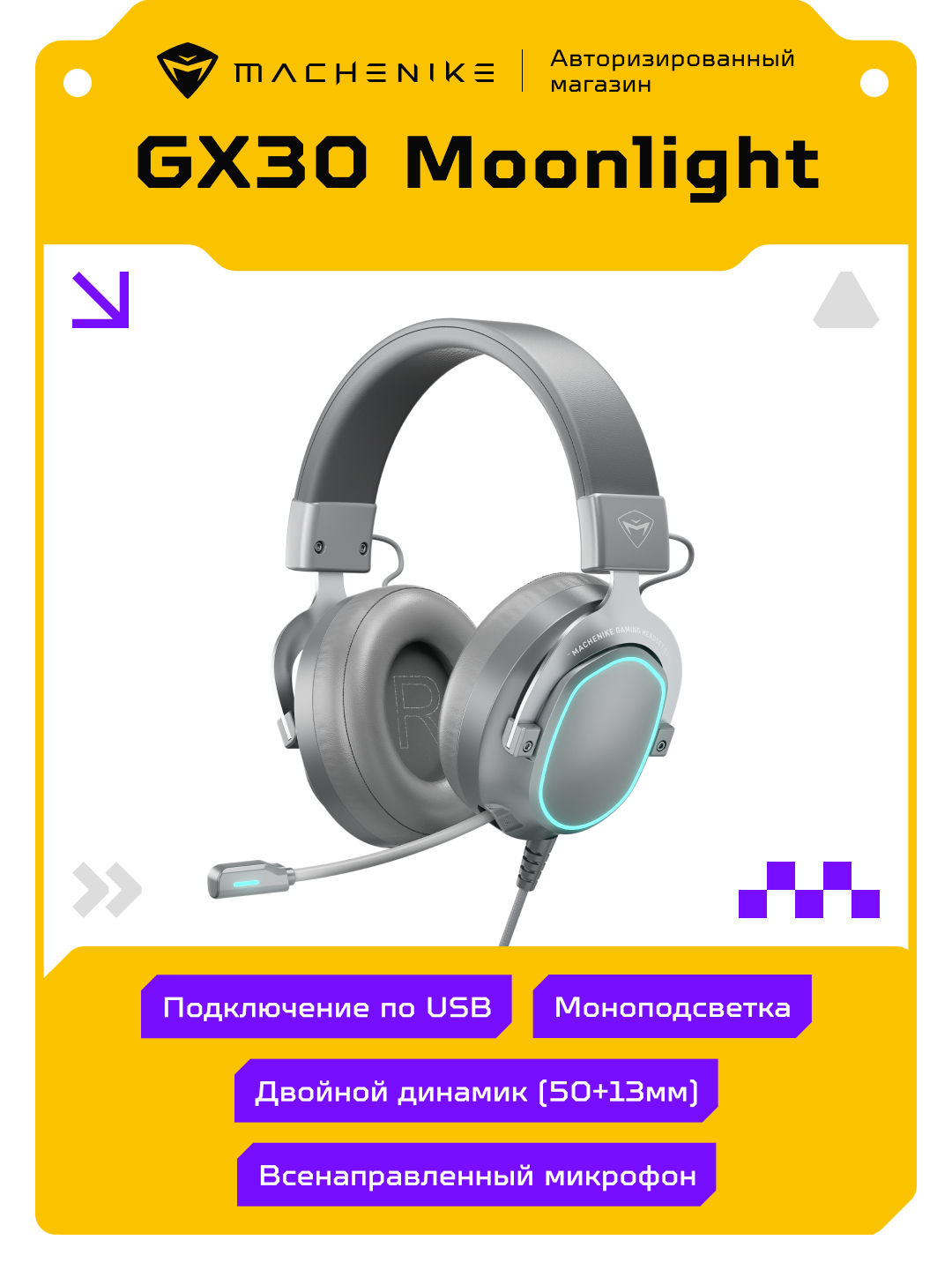 Купить Игровые проводные наушники Machenike GX30 Moonlight JJ02GC00HRU, подсветка, двойной динамик, микрофон с доставкой по всей России.