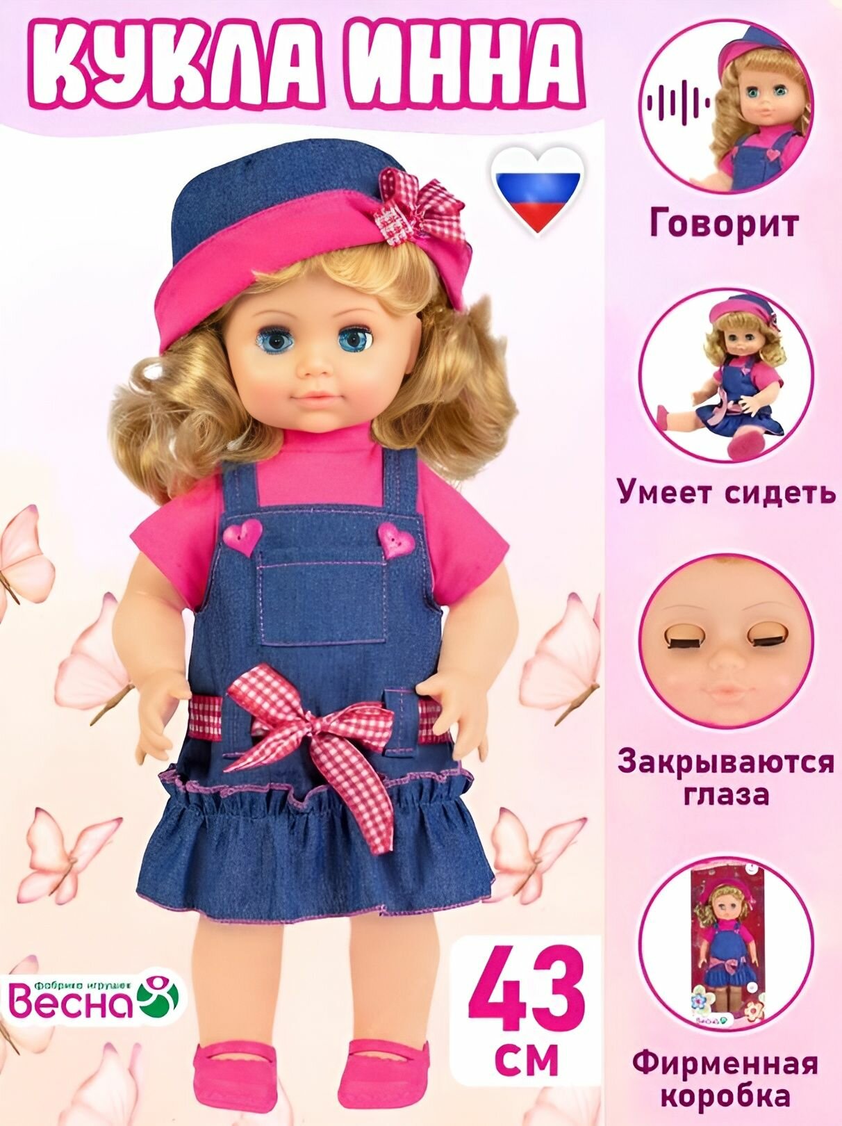 Игрушечная кукла для девочки «Инна 21», большая, рост 43 см. Озвученная. Умеет говорить, классическая куколка с длинными волосами, закрывающая глаза (арт. В2623-о): сравнение цен, характеристики, фото, актуальное наличие и цены.