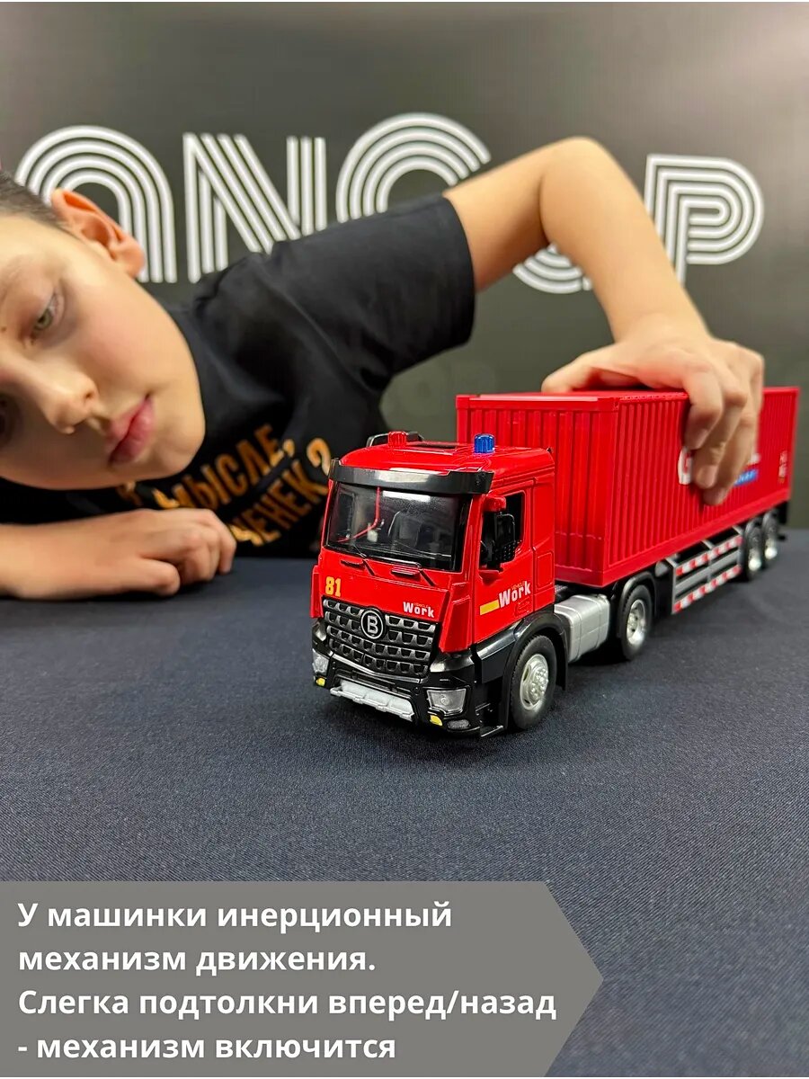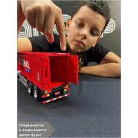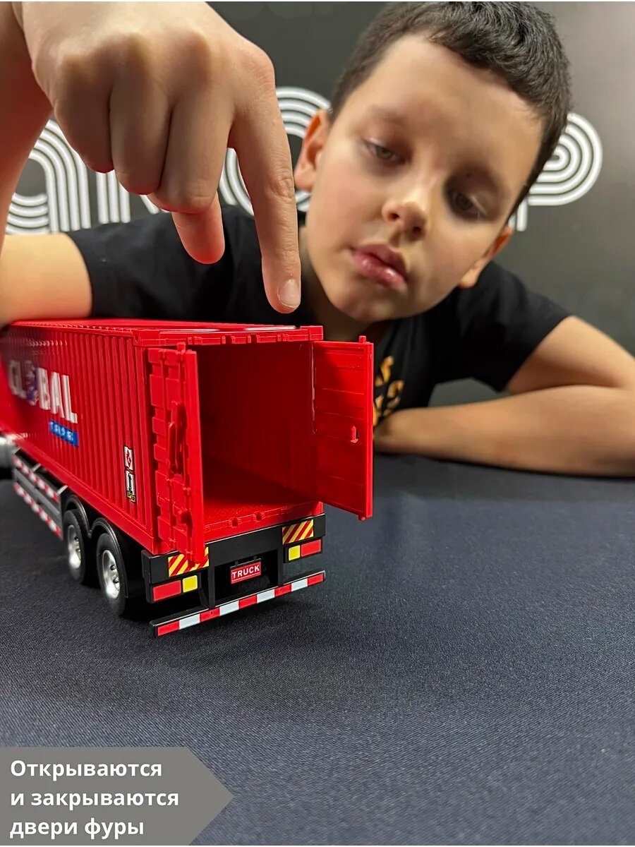 Игрушечный грузовик‑фура с прицепом — детская строительная техника для дома, двора и песочницы. Это детский грузовик из металла с прочным пластиковым кузовом, реалистичной кабиной и множеством функций, которые понравятся юному строителю. Подходит как машинка для мальчика, грузовая машинка игрушка и модель грузовика коллекционная для пополнения коллекции спецтехника и дорожная техника.