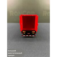 - Кабина из металла, кузов из прочного пластика — машинка из металла выглядит как настоящая спецтехника.