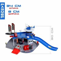 размер машинок: 6,5 х 3,5 х 4 см и 5,3 х 3 х 3 см; размер вертолёта: 8 х 2,2 х 3,5 см; размер упаковки: 34 х 8 х 30,5 см