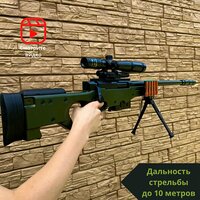Купить Игрушечная снайперская винтовка АВМ с оптическим прицелом и лазером, Nerf патронами, вылет гильз, ремень, сошки, 125 см с доставкой по всей России.