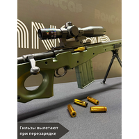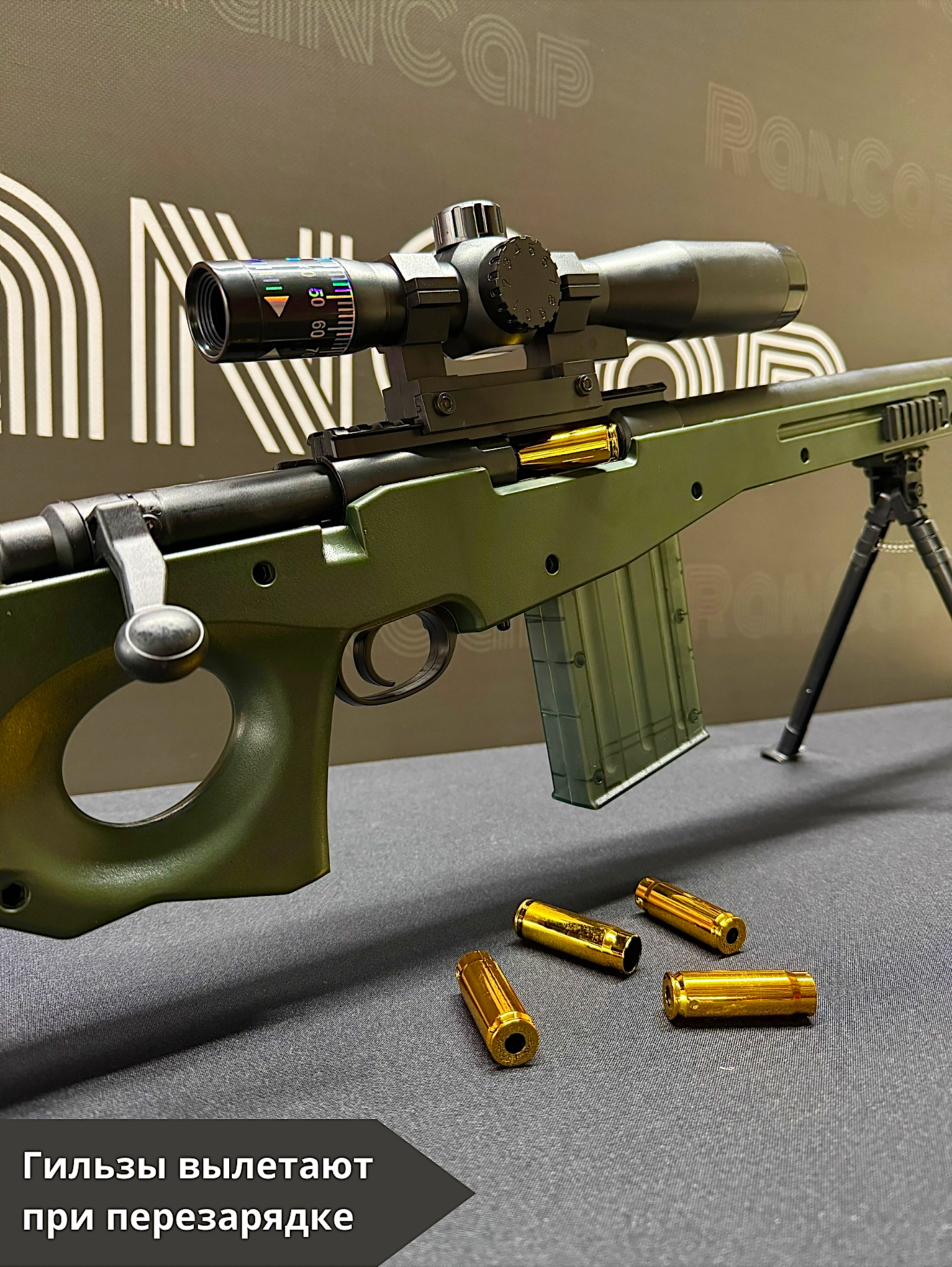 Детская снайперская винтовка АВМ — реалистичная игрушка для ценителей военной техники и активных игр. Точная стилизация под легендарную винтовку АВП, эффект выброса гильз и оптический прицел делают игру захватывающей и зрелищной.