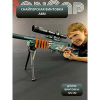 Купить Игрушечная снайперская винтовка AWM (М24) 125 см прицел с увеличением + лазер, сошки, мягкие нерф патроны, выброс гильз с доставкой по всей России.