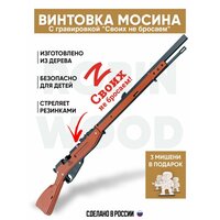 Купить Игрушечная винтовка c Гравировкой «Мосина пехотная «, деревянный резинкострел стреляющий очередями в подарок с доставкой по всей России.