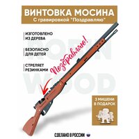 Купить Игрушечная винтовка c Гравировкой «Мосина пехотная «, деревянный резинкострел стреляющий очередями в подарок с доставкой по всей России.
