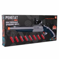 Двуствольный дробовик стреляет мягкими снарядами. Отличительной чертой является реалистичные механизмы стрельбы и перезарядки. Мягкие патроны снаряжаются в гильзы, которые входят в комплект. После выстрела при перезарядке дробовика гильзы выбрасывается наружу Оснащен коллиматорным прицелом с подсветкой. Мягкие патроны безопасны.