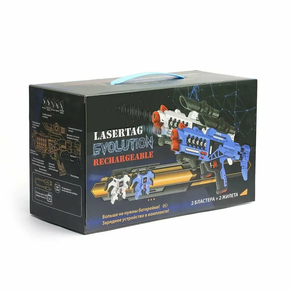 Купить Игрушечное оружие с аксессуарами, Бластер, Лазертаг с зарядкой Игровой набор для двух игроков 2 и 2 жилета Lasertag Evolution Rechargeable с доставкой по всей России.