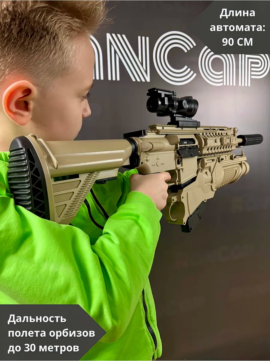 Представляем автомат HK416 на орбизах — реалистичный и мощный орбизный автомат, выполненный под оригинал HK 416. Этот автомат с орбизами сочетает точность, дальность и удобство эксплуатации: доступен автоматический и одиночный режимы стрельбы, при выстреле двигается затвор, а дальность полёта орбизов достигает до 30 м, что делает его отличным пулемётом на орбизах для уличных баталий и домашних игр.