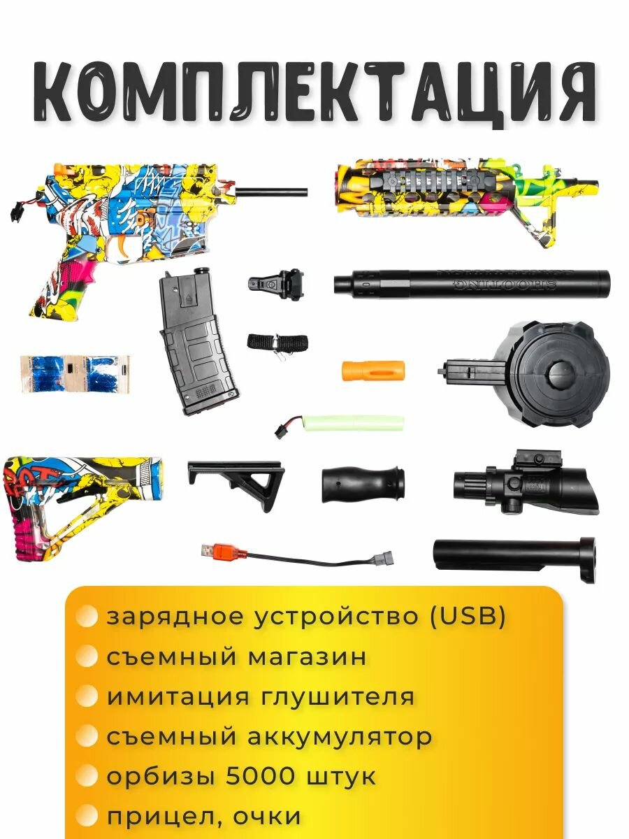 | Комплектация | Пулемет, Орбизы, Аккумулятор, Зарядник, Оптический прицел, Прицел, Два магазина, Две рукоятки. |