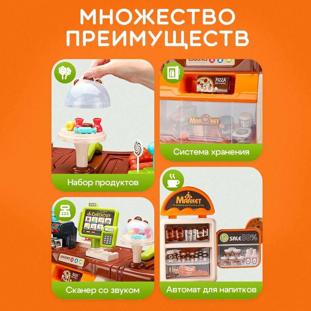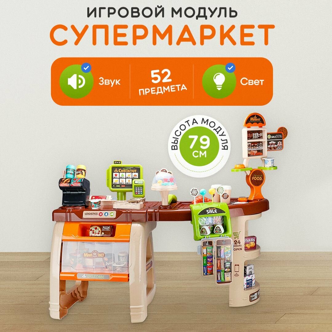 Купить Игрушечный детский игровой набор со светом и звуком «Супермаркет». В комплекте 52 предмета. Подарок для девочек и мальчиков. Артикул 1939396 с доставкой по всей России.