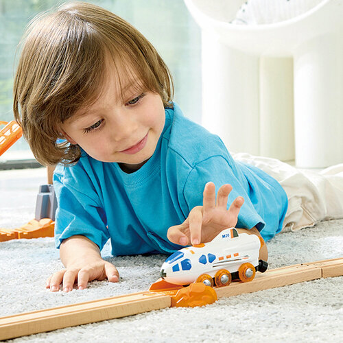 Компания Hape один из крупнейших в мире производителей игрушек из экологически чистых материалов. Игрушки Hape креативны и безопасны, соответствуют самым строгим международным стандартам качества и безопасности. Отправьтесь в галактическое приключение с нашим уникальным игрушечным Космическим Поездом. Нажмите кнопку сверху, чтобы увидеть, как раскрываются крылья, превращая поезд в величественный челнок. Услышьте захватывающий обратный отсчет и звуки стрельбы, которые сопровождаются ярким светом, что делает игру еще более увлекательной и реалистичной. Игрушка имеет светоотражающие оранжевые предупреждающие линии со всех сторон, повышающие его видимость во время игры. Игрушка разжигает воображение вашего ребенка, одновременно развивая мелкую моторику посредством интерактивной игры. Комплектация: Космический поезд 2 в 1 (поезд и космический челнок), USB-провод (Type-C). Комплектация: Материалы: пластик (полипропилен, ABS, TPR), сталь. Габариты игрушки (ДхШхВ): 13 х 5,8 х 5,7 см. Размер индивидуальной упаковки (ДхШхВ): 20 х 7 х 10 см. Возрастные рекомендации: для мальчиков и девочек от 3 лет.