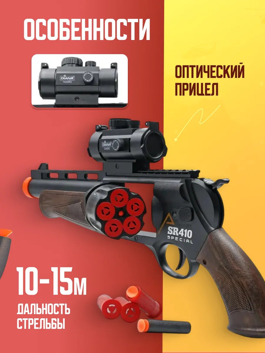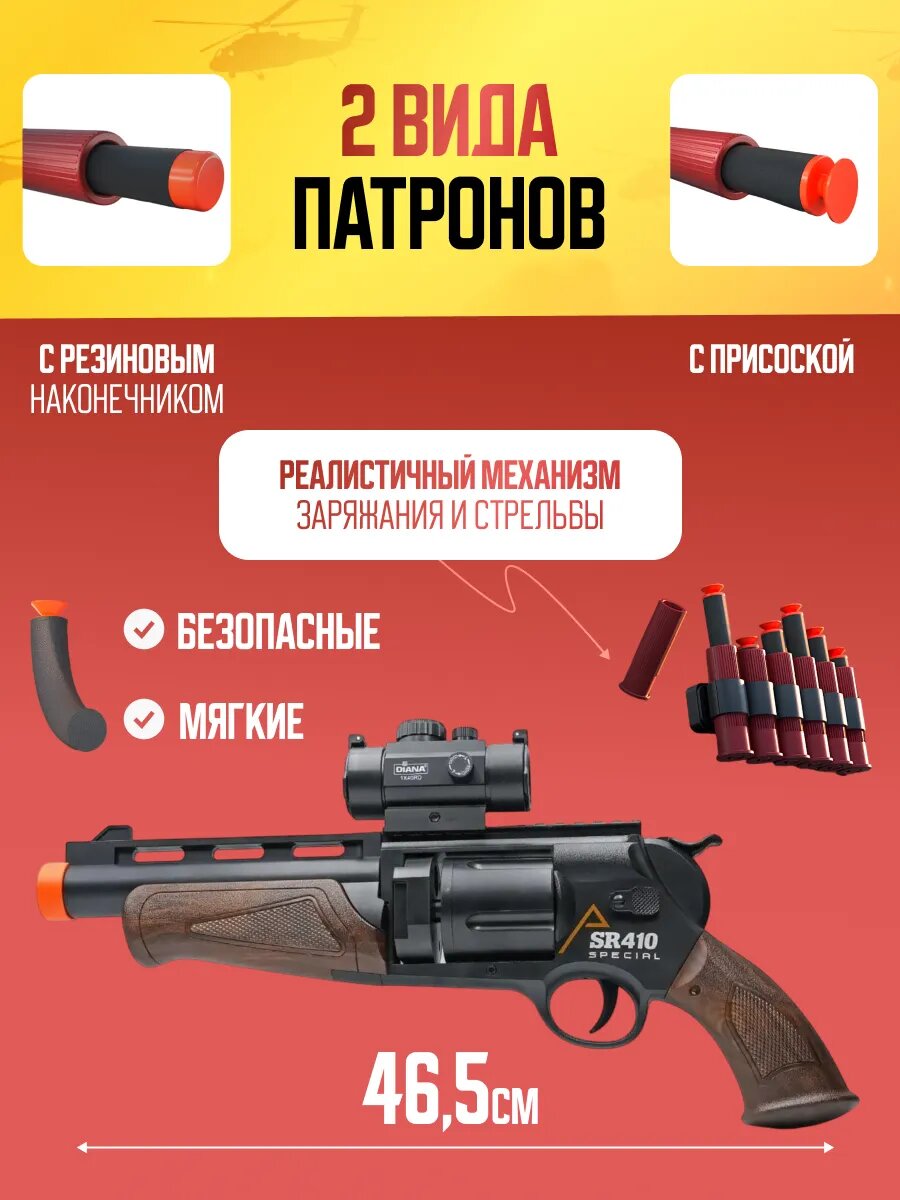 Купить Игрушечный дробовик-револьвер с прицелом и мягкими пулями бластер с доставкой по всей России. Игрушечный дробовик-револьвер с прицелом и мягкими пулями бластер: сравнение цен, характеристики, фото, актуальное наличие и цены.