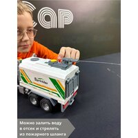 — Функциональность для игры: большой вместительный кузов с открывающейся задней дверцей, пожарный шланг на крыше — заливай воду и «туши пожар». Эффект дыма усиливает погружение, а яркая расцветка и аккуратная детализация делают модель привлекательной. Мягкие боковые зеркала повышают безопасность, двери проработаны, детали крепкие.