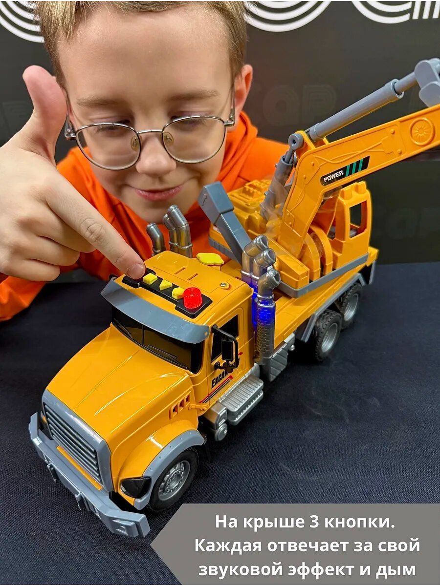 Купить Игрушечный инерционный грузовик экскаватор RanCap с дымом светом и звуком с доставкой по всей России.
