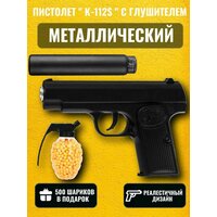 Купить Игрушечный металлический пистолет с глушителем K112 S / Пистолет с пульками с доставкой по всей России.