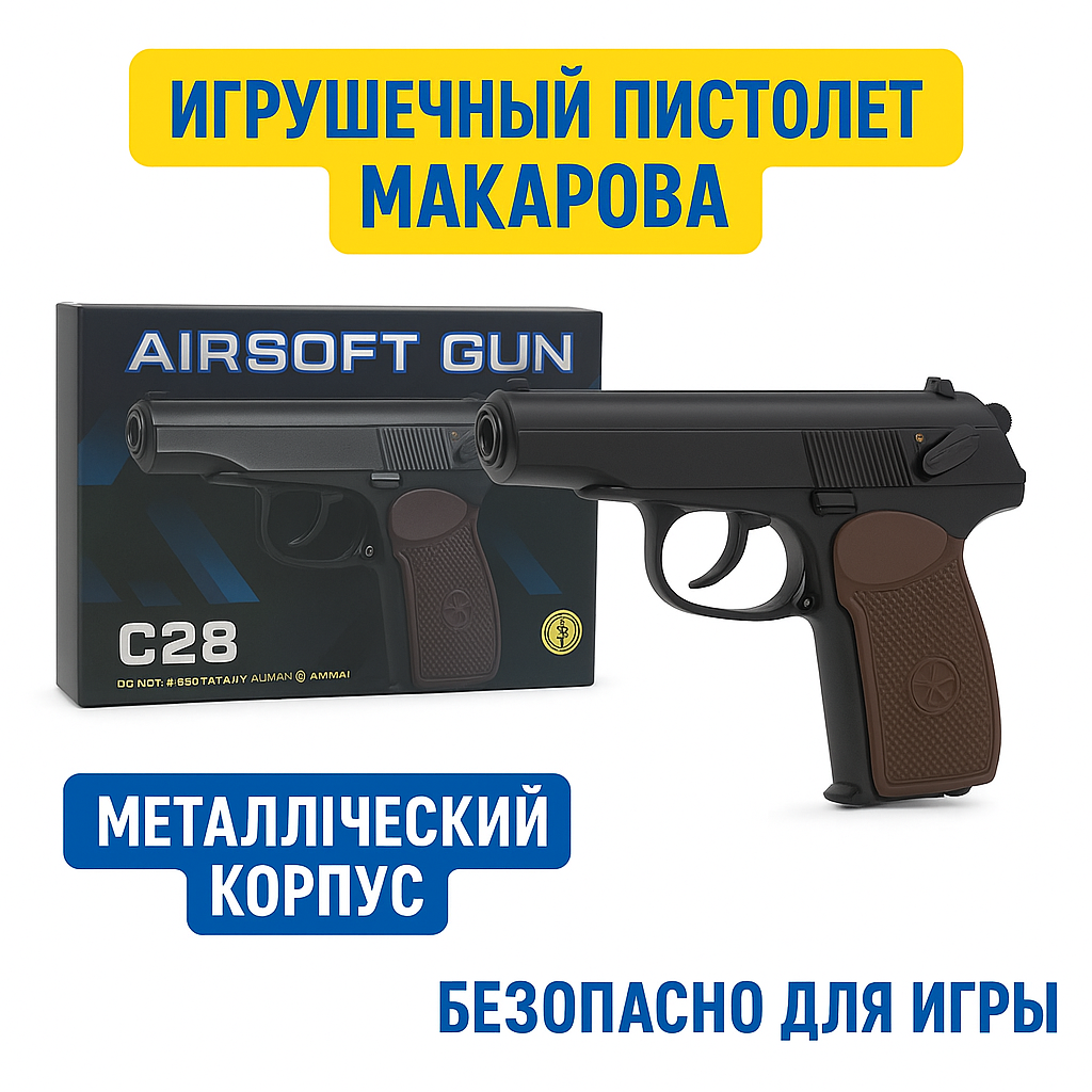 Игрушечный пистолет Макарова Airsoft GUN C28, спринговая модель, 6 мм BB, металлический корпус: сравнение цен, характеристики, фото, актуальное наличие и цены.