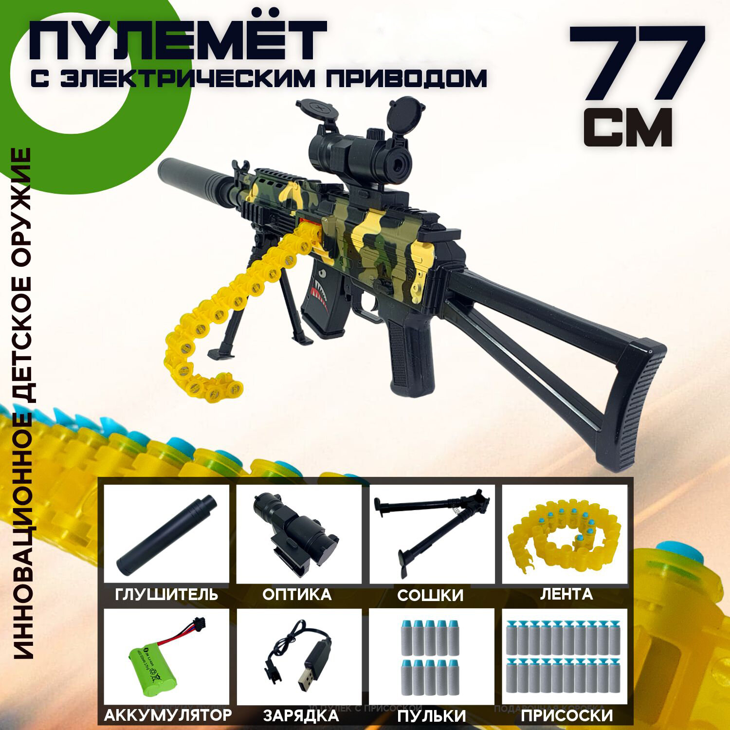 Игрушечный пулемет 77 см, с электрическим приводом и оптическим прицелом, стреляет мягкими пулями, зеленый: сравнение цен, характеристики, фото, актуальное наличие и цены.