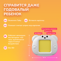Новинка 2023 года - TALKY. Talky поможет расширить пассивный словарный запас, развить мелкую моторику, запустить речь и весело выучить слова сразу на двух языках. Talky - вставьте умную карточку с QR-кодом на обратной стороне и устройство прочитает ее.