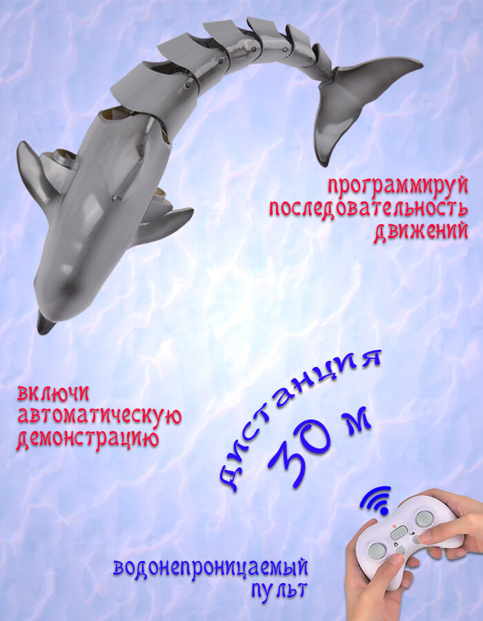 | Комплектация | Дельфин на радиоуправлении - 1 шт; Отвертка - 1 шт; Пульт дистанционного управления - 1 шт; запасные лопасти - 2 шт; Аккумулятор - 1 шт; зарядное устройство – 1 шт; инструкция – 1 шт. |