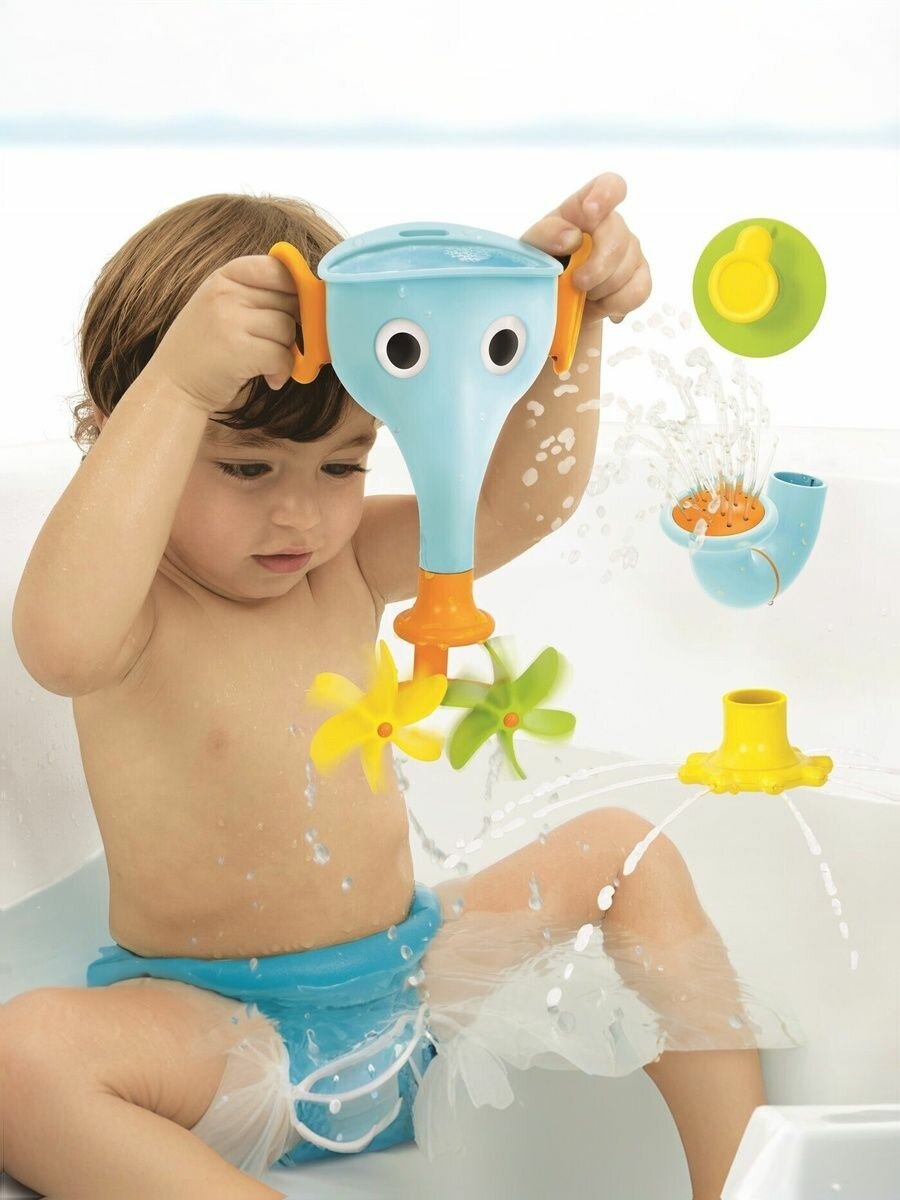 Игрушка для ванной Yookidoo "Веселый слон" с насадками для водных эффектов в расцветке: голубой.