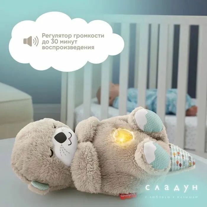Сенсорное развитие: мягкая текстура, нежные звуки и подсветка стимулируют развитие зрительных, тактильных и слуховых чувств малыша. Успокаивающее воздействие на органы чувств ребенка: милое личико выдры, успокаивающие движения и нежная музыка успокоят малыша и подарят ему чувство безопасности. Вы можете проверить работу игрушки в тестовом режиме до покупки, для этого нажмите на кнопку в передней части игрушки.