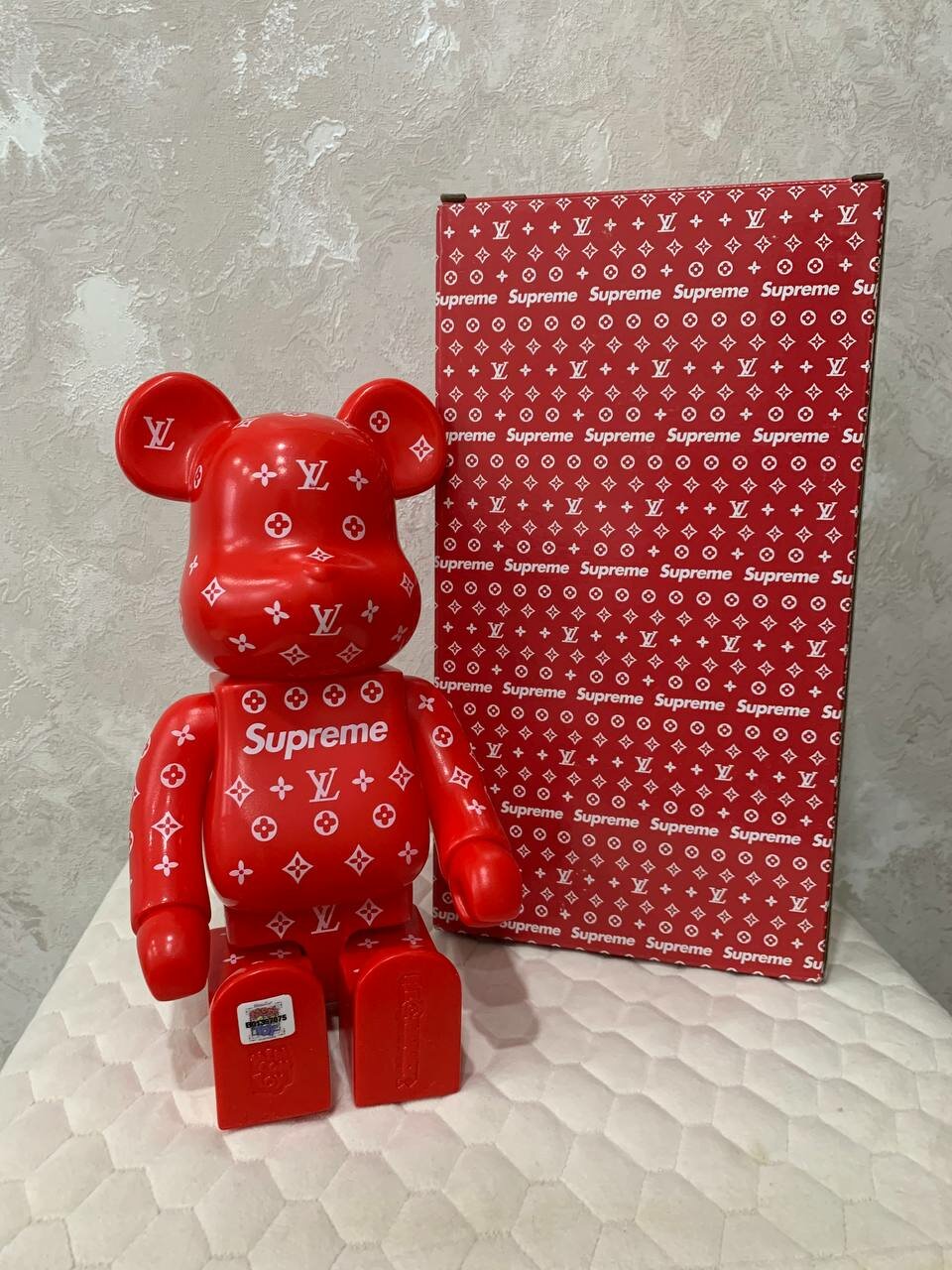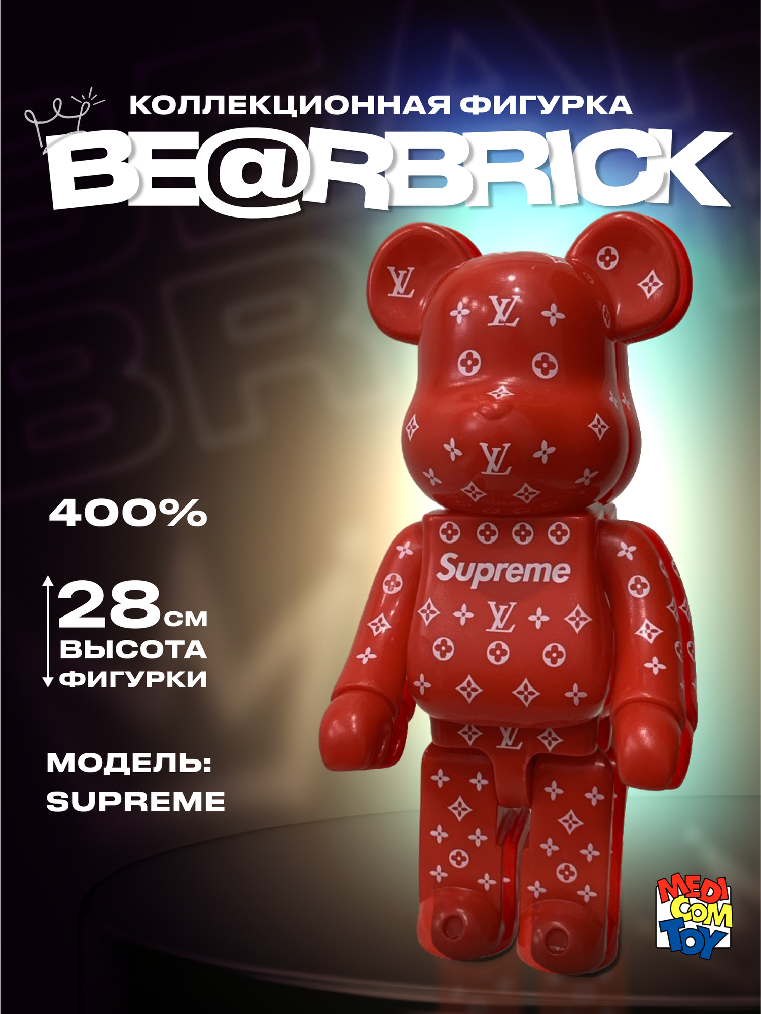 Фигурка Bearbrick , высотой 28 см, выполнена в характерных для бренда Supreme цветах и дизайне, что подчеркивает ее статус на грани искусства и уличной моды. Отчетливый логотип, яркие акценты и внимание к деталям делают эту игрушку идеальным дополнением для любой коллекции.