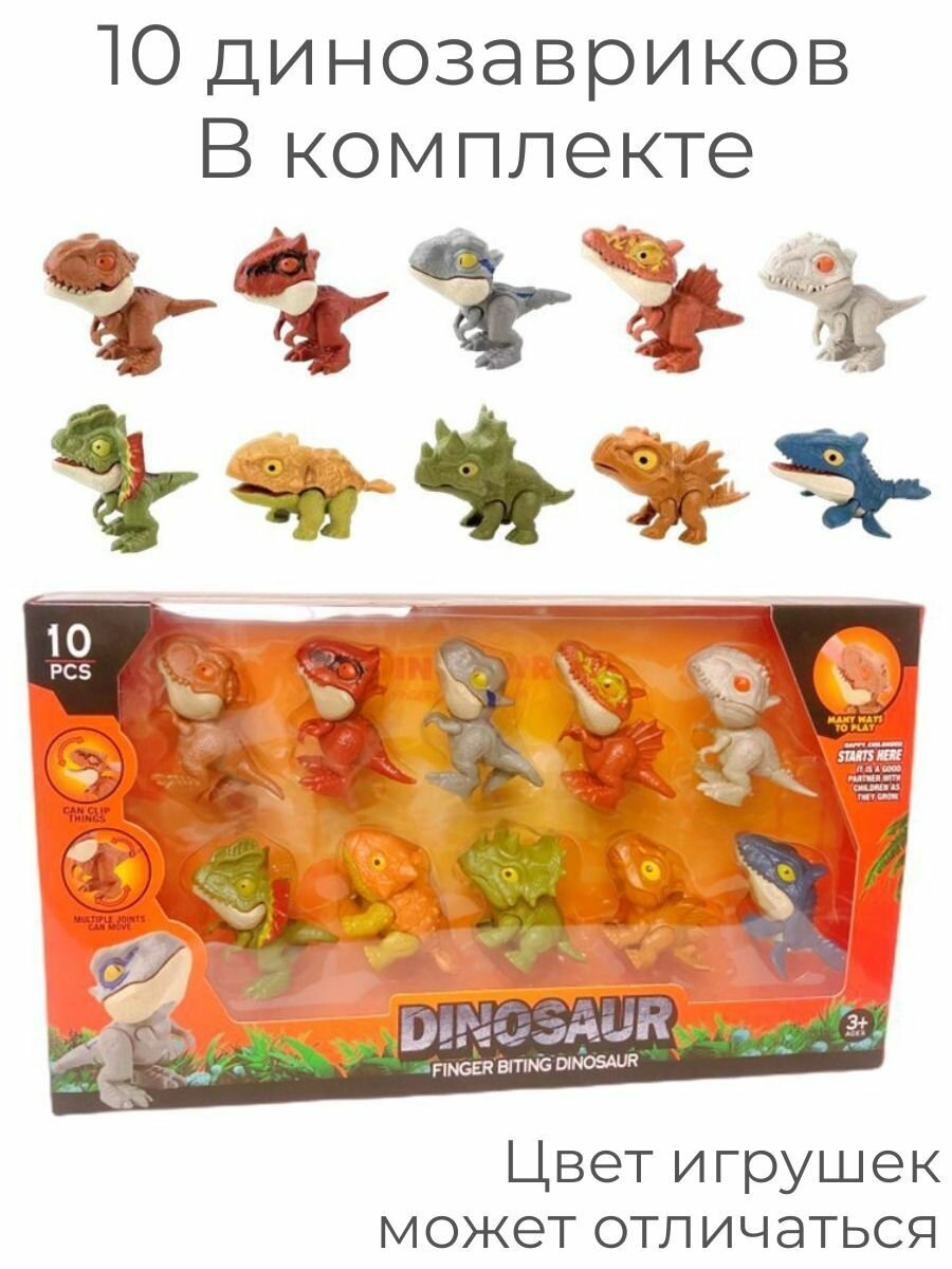 Игрушка фигурка динозавр Зубастик кусающий палец, 10 шт, вся коллекция / Пальчиковый динозавр / Антистресс игрушка