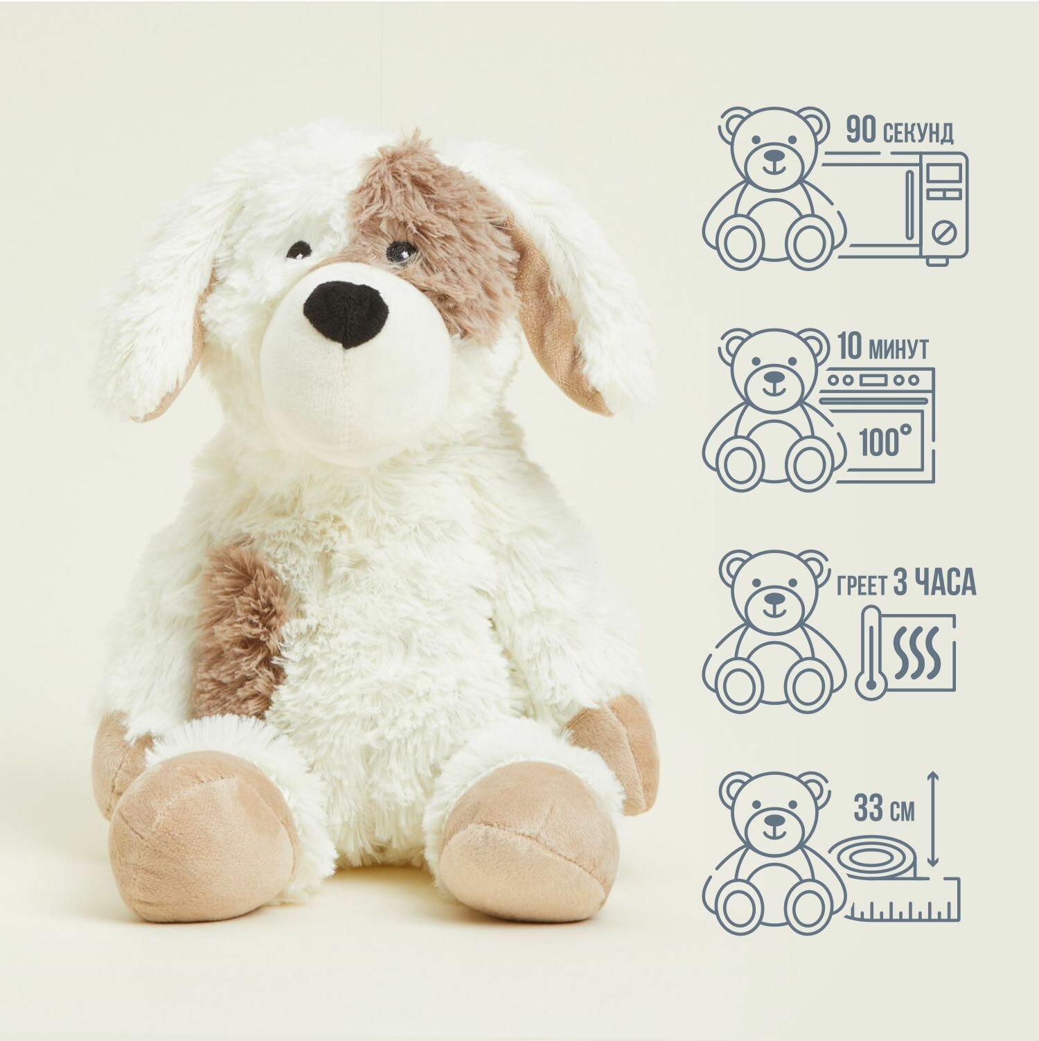 Очаровательная мягкая игрушка-грелка Warmies Песик - идеальный подарок для людей всех возрастов. Сделана из роскошного мягкого меха и нежно пахнет расслабляющей французской лавандой. Просто нагрейте в микроволновке в течение 90 секунд, чтобы обеспечить 2-3 часа успокаивающего тепла и комфорта. Дайте полностью остыть перед повторным нагревом. При должном уходе эти универсальные и полезные подарки прослужат долгие годы.
