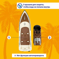 Игрушечная лодка развивает скорость до 15 км/ч, радиус действия радиопульта - 50 метров и оснащен защитой от помех. При сильном отдалении моторная лодка подаст звуковой сигнал. Продуманная конструкция защитит от переворачивания во время игры на воде.