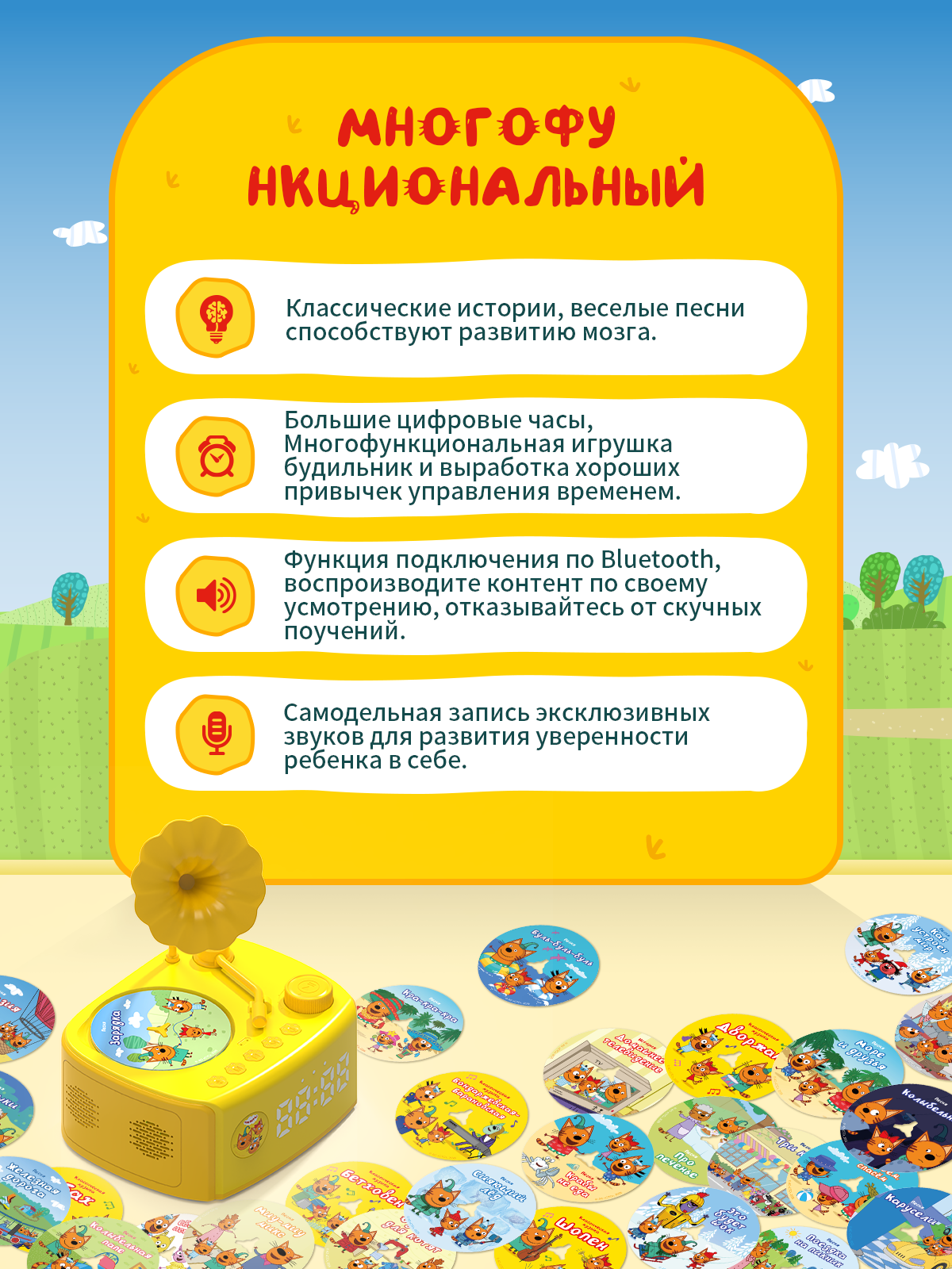 Игрушка музыкальная логопедическая biidi Три кота «Граммофон», музыкальный, с Bluetooth, будильник , ночник,: сравнение цен, характеристики, фото, актуальное наличие и цены.
