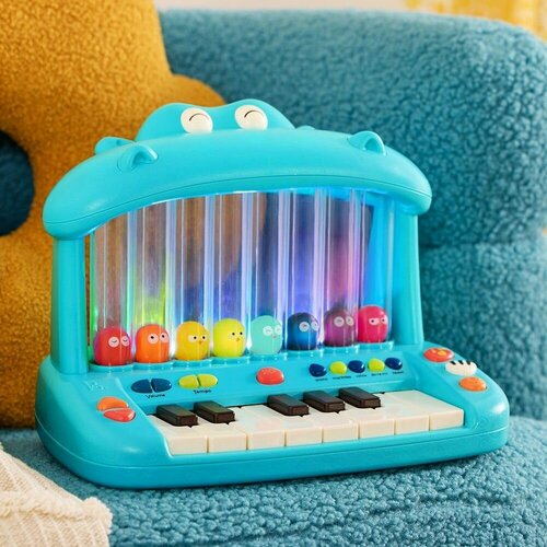 Пианино в виде пасти бегемотика -увлекательная развивающая игрушка, которая идеально подходит для маленьких музыкантов. Игрушка оснащена 8 белыми клавишами, которые не просто издают звуки, но и заставляют птичек загораться и выпрыгивать, создавая уникальную атмосферу радости и веселья.