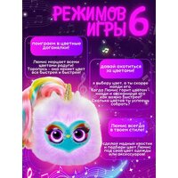 Игрушка издает больше сотни звуков и фраз на русском языке. У неё 5 режимов игры: от поиска цвета до музыкального сопровождения к каждому оттенку радуги!