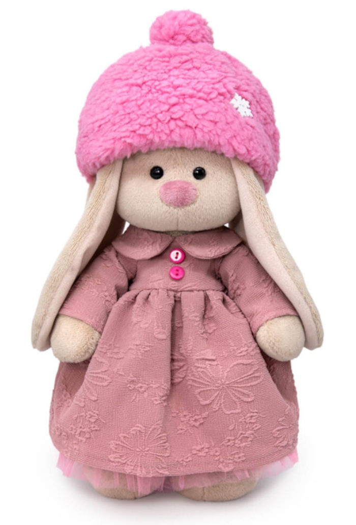 Мягкая игрушка Зайка Ми в платье и меховой шапке, 25 см, BUDIBASA
