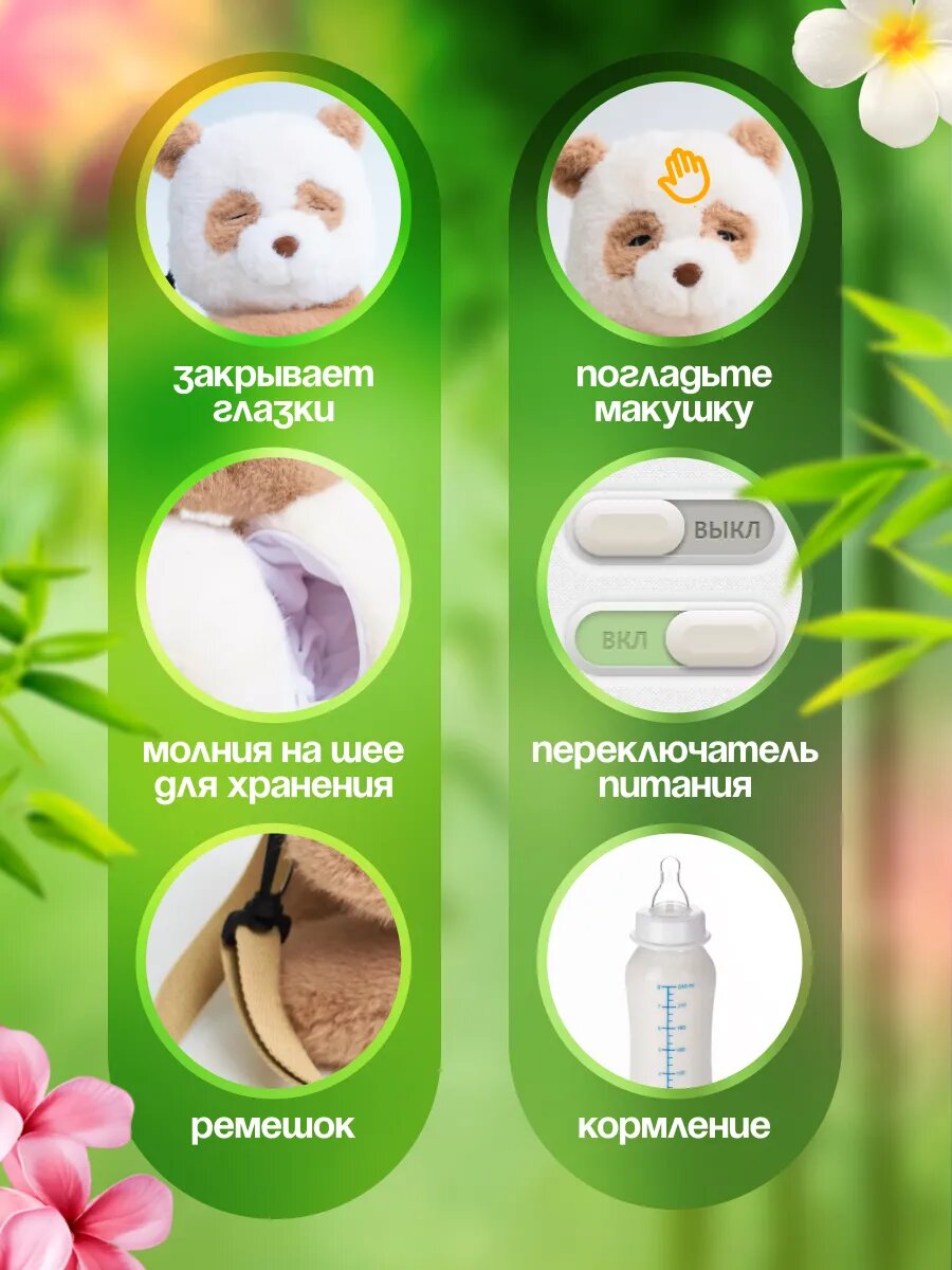 Представляем вам настоящую звезду среди игрушек — интерактивную панду! Эта пандачка не просто мягкая игрушка, а настоящий друг, который умеет удивлять и развлекать. Погладьте ее макушку, и вы увидите, как она закрывает свои глазки, словно готовится к сладкому сну. Но не спешите, ведь это только начало!