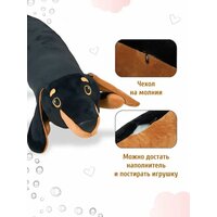 Такса длиной 140 см идеально подходит для игр, отдыха и спокойных вечеров с любимыми фильмами. Дети смогут обниматься с ней, а взрослые оценят её как стильный элемент декора. Мягкая игрушка привлекает внимание не только своим размером, но и милым дизайном, который способен вызвать улыбку и добавить положительных эмоций в повседневную жизнь.